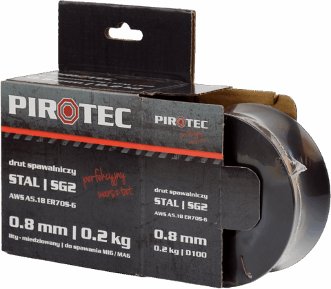 Lity, miedziowany drut spawalniczy SG2 do łukowego spawania półautomatycznego w osłonie gazowej metodą MIG / MAG (np. MAG – M21) stali niestopowych, niskostopowych i drobnoziarnistych.