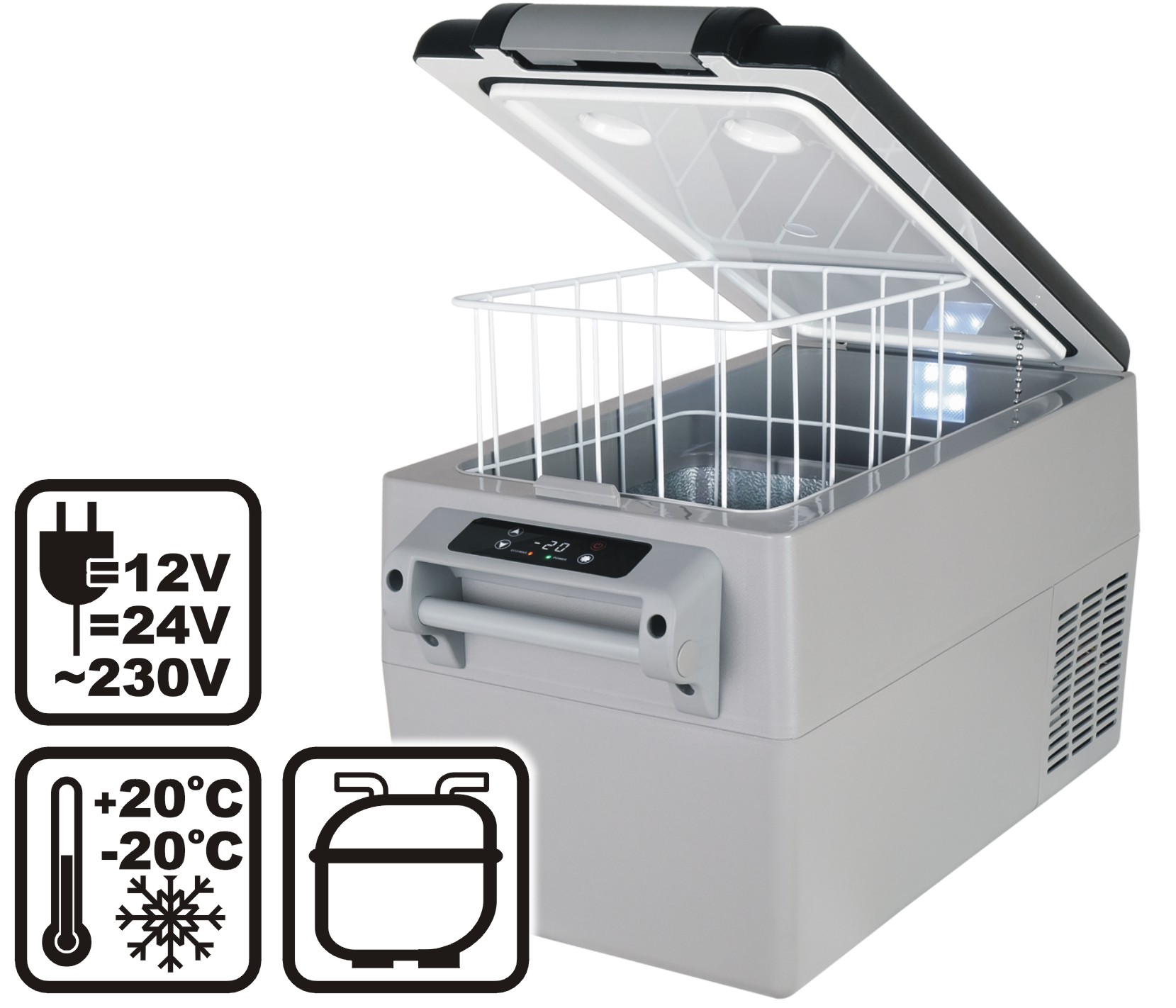 - szybkie i skuteczne przechowywanie | mrożenie wszelkich wrażliwych na ciepło artykułów spożywczych; owoców świeżych i mrożonych, leków, lodów i napojów w optymalnych warunkach chłodniczych z zakresu od -20°C do +20°C – niezależnie od temperatury zewnętrznej