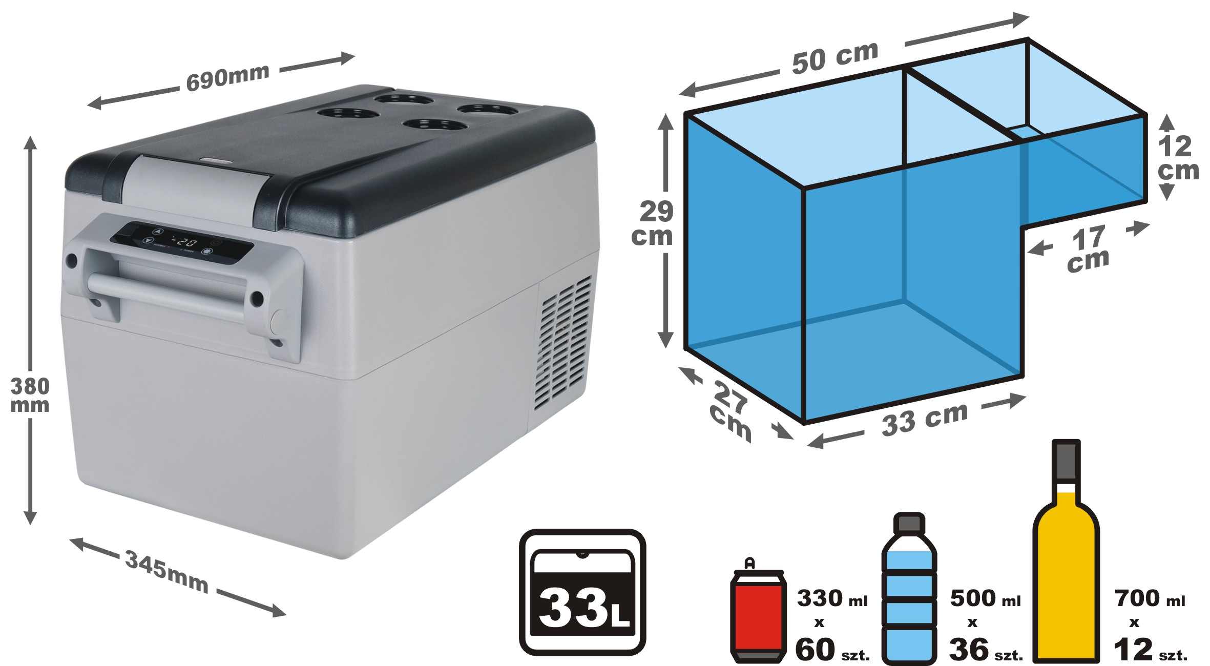 - pojemność użytkowa: 33 L